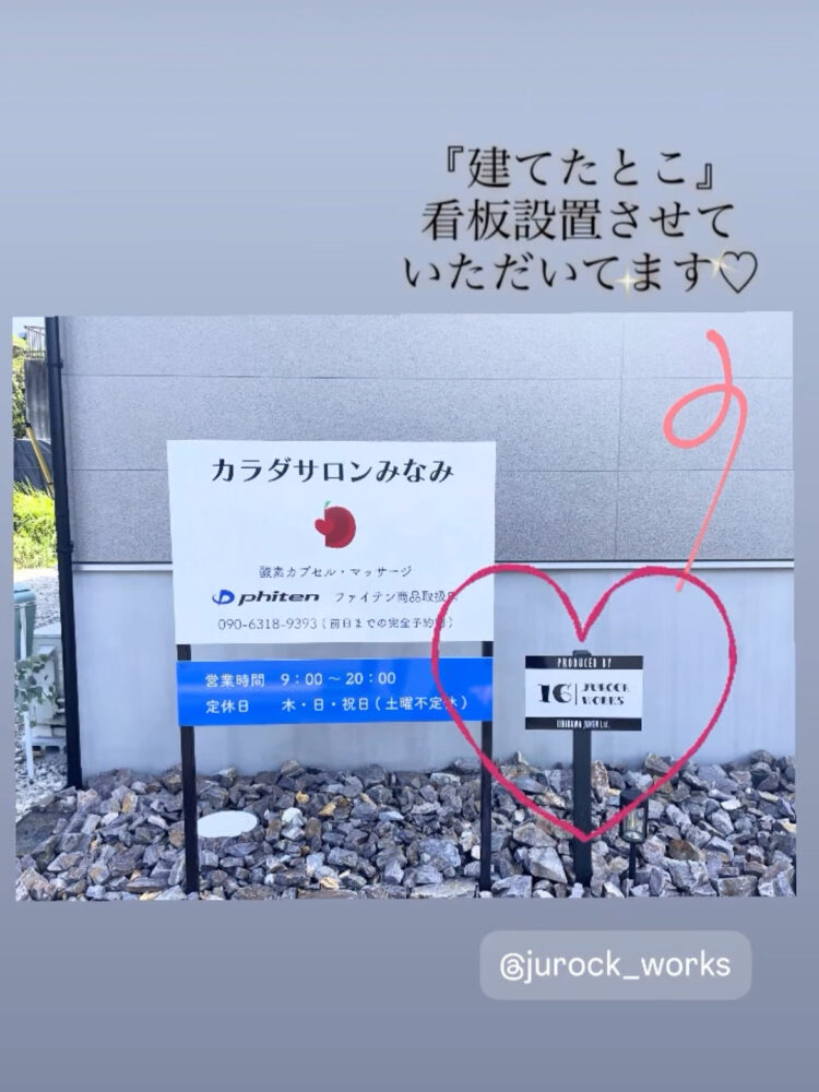新築/施工事例 建てたとこ。 “働くとこto住むとこ” からだサロンみなみさん。 完成してしまえば、どこで造ったのかわからなくなってしまう…ちょっと寂しい。 お客様と造りあげた素敵な作品。建てたとこ…伝えたい😊 とお客様にご相談し看板設置させていただきました♡ 通りすがりに、サロンの帰りに、散歩のときに。 外観に邪魔にならない配置で設置。 気づいてもらえたら…うれしいです♪♪ 16works, サロン兼住宅, 大工と造るちょっとおしゃれな家づくり, 新築注文住宅, 石川住建, 碧南市工務店, 自由設計の家づくり