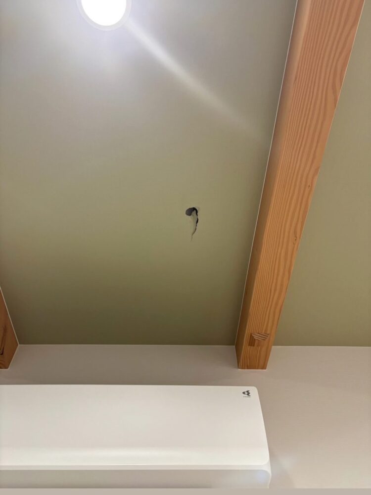 クロスを剥がしていきます。穴のあいている所は、補修しました!